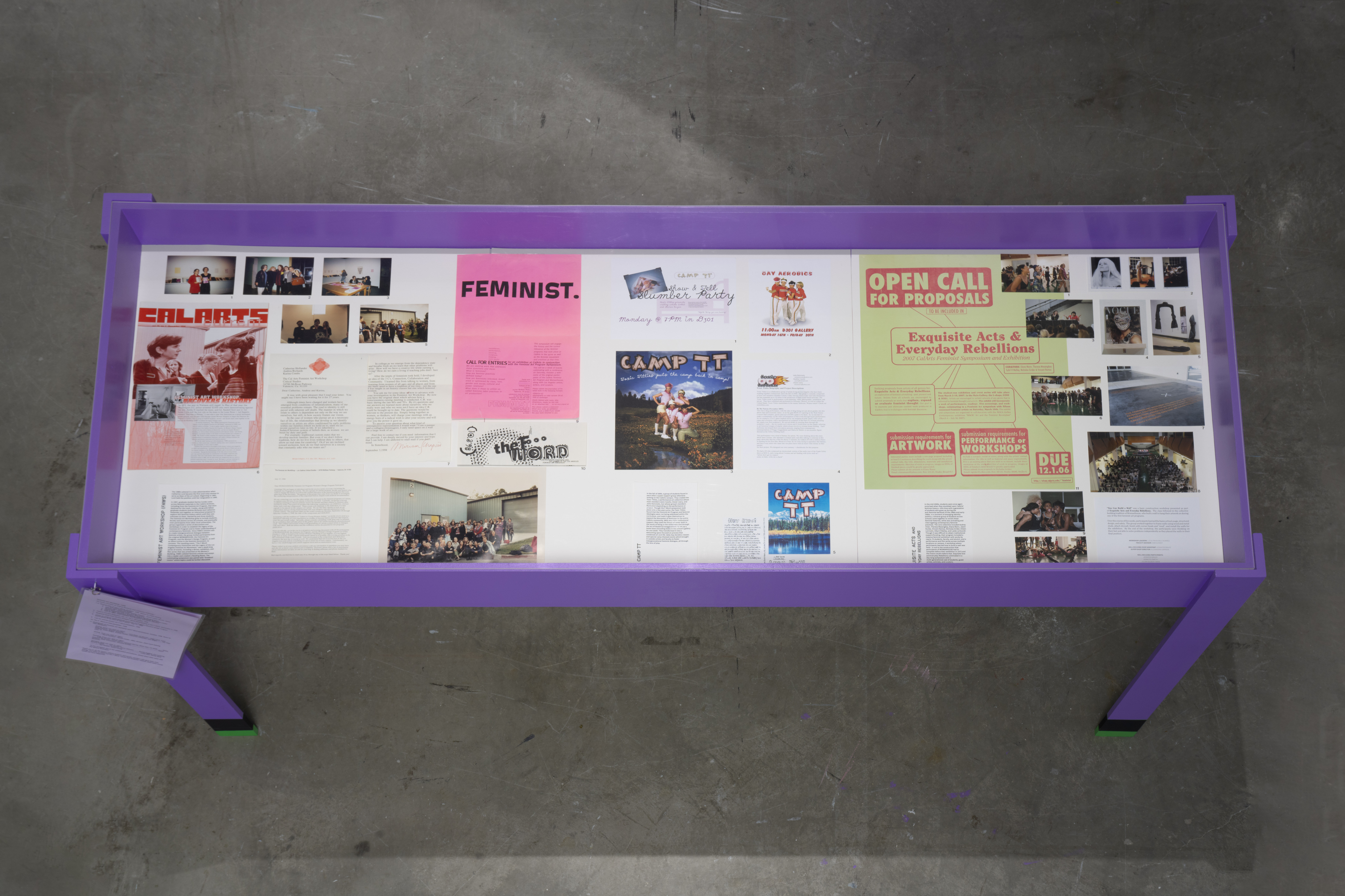 In 1970, artist Judy Chicago pioneered a feminist model for art and education with her students at Fresno State College. Chicago was invited by Miriam Schapiro to collaboratively expand this program at CalArts in 1971, where they would go on to develop radical and now-influential forms of art, pedagogy, and performance. The program began a cycle of collective activity with the contribution of numerous students, faculty, artists, and designers, many of whom are now considered pivotal artists in feminist art history. Chicago and Schapiro, along with their students and guest artists, organized the ground-breaking feminist collective installation, Womanhouse, in 1972, and supported a number of transformative and pivotal performances and publications working with the Women’s Design Program. A complex and fruitful moment at CalArts, these energetic years encouraged new feminist pedagogies to bloom simultaneously inside and outside the Institute. This exhibition acknowledges the many generations of women, trans, queer, and non-binary faculty, students, and artists who have stewarded these histories through teaching, archiving, and experimenting. Engaging with these initial moments, while also drawing connections with subsequent contributions, The Feminist Art Program (1970–1975): Cycles of Collectivity brings together these histories through its diverse feminisms, gender theories, and transfeminismos. The exhibition gathers materials from institutional and personal archives, joining them with new responsive artworks by CalArts alumni ak jenkins, Andrea Bowers, Gala Porras-Kim, and Suzanne Lacy. The show includes a special presentation of “The Performing Archive” by Leslie Labowitz Starus and Lacy. The Feminist Art Program (1970–1975): Cycles of Collectivity presents an ever-growing feminist contribution to art and pedagogy with a multiplicity of voices, contexts, and identities, with an intergenerational collective of scholars, artists, activists, and curators contributing to the research, memory, syllabi, and artworks on display.