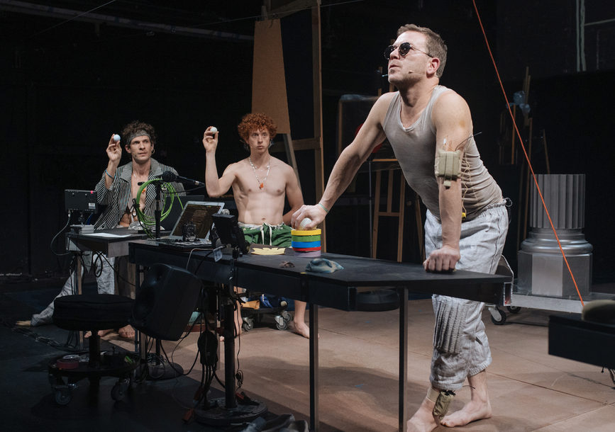 Richard Foreman is a major American avant-garde playwright who founded the Ontological-Hysteric Theater in 1968. He has written and directed over 50 plays, which toured nationally and internationally. In 1988, he wrote Symphony of Rats and directed The Wooster Group performers Peyton Smith, Kate Valk, Ron Vawter, and Jeff Webster in a production at The Performing Garage. In 2022, LeCompte and Valk asked Foreman if the Group could make a new version of the play. He responded, “You can do whatever you want! I hope it’s completely unrecognizable.”